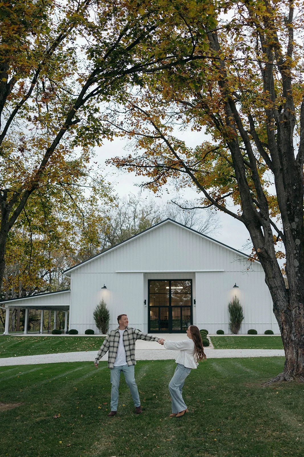 I’ve had Cliffside Acres on my radar for a while. It’s one of those venues where you just know. The white barn, the towering trees, the grounds that feel intentional without being overdone. So when this couple not only booked me for their wedding there but also wanted to do their engagement session at the venue? I said yes before they finished the sentence.