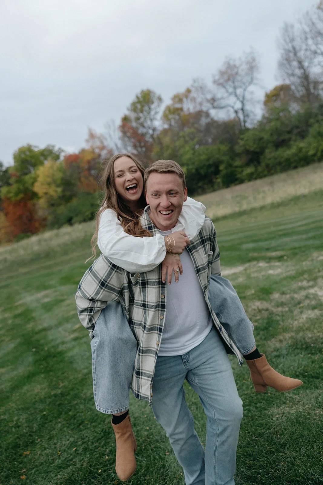 Okay, the piggyback photos. I’m obsessed. He took off running across the field with her on his back, both of them completely losing it, and I just kept shooting. Those frames; the full belly laughs, the fall color in the trees behind them, her holding on for dear life, are some of my favorites I’ve taken all year.