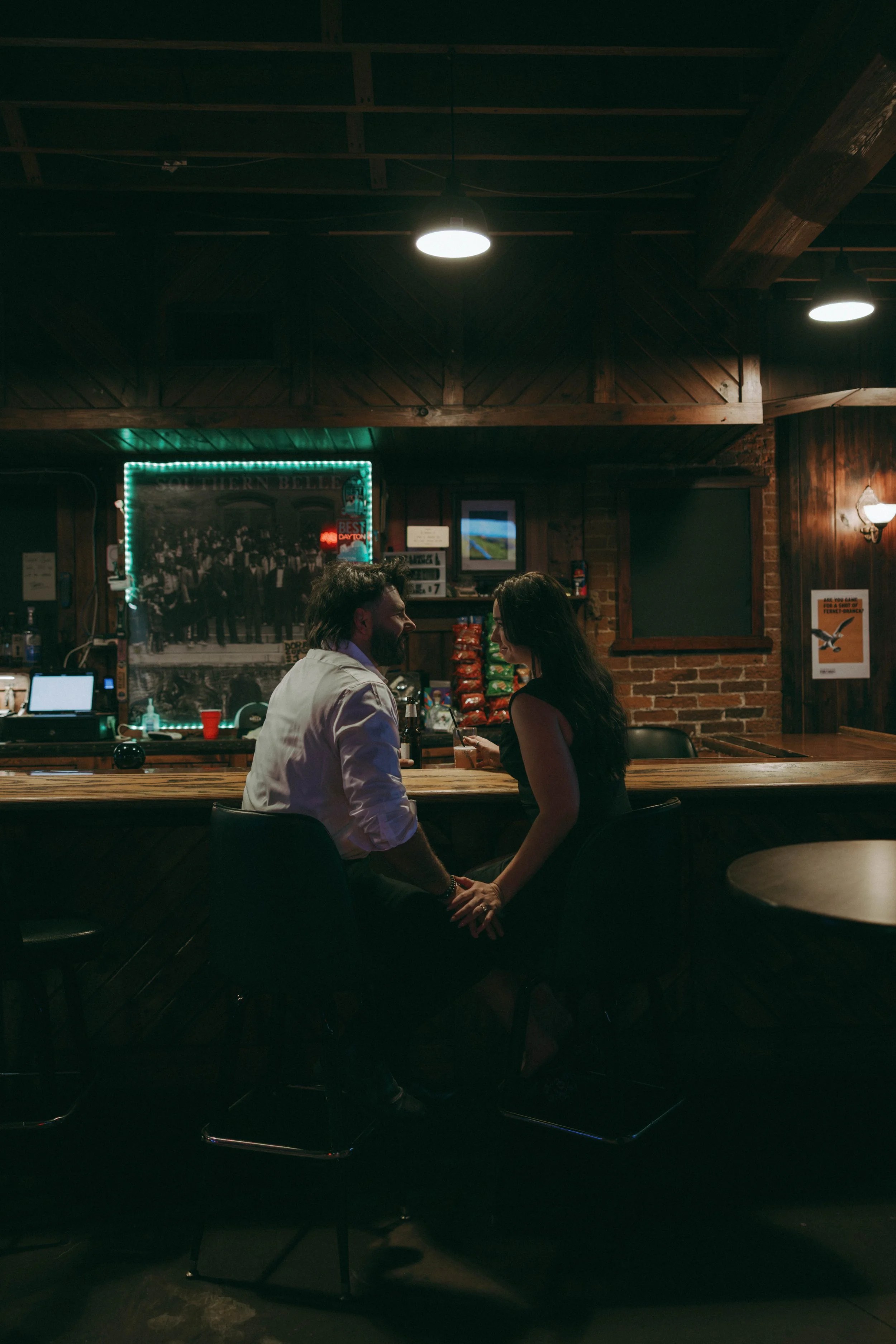 If your relationship lives in places like this; local bars, late nights, your favorite hole-in-the-wall, your engagement session should too. I love finding the locations that actually tell your story, wherever that leads.